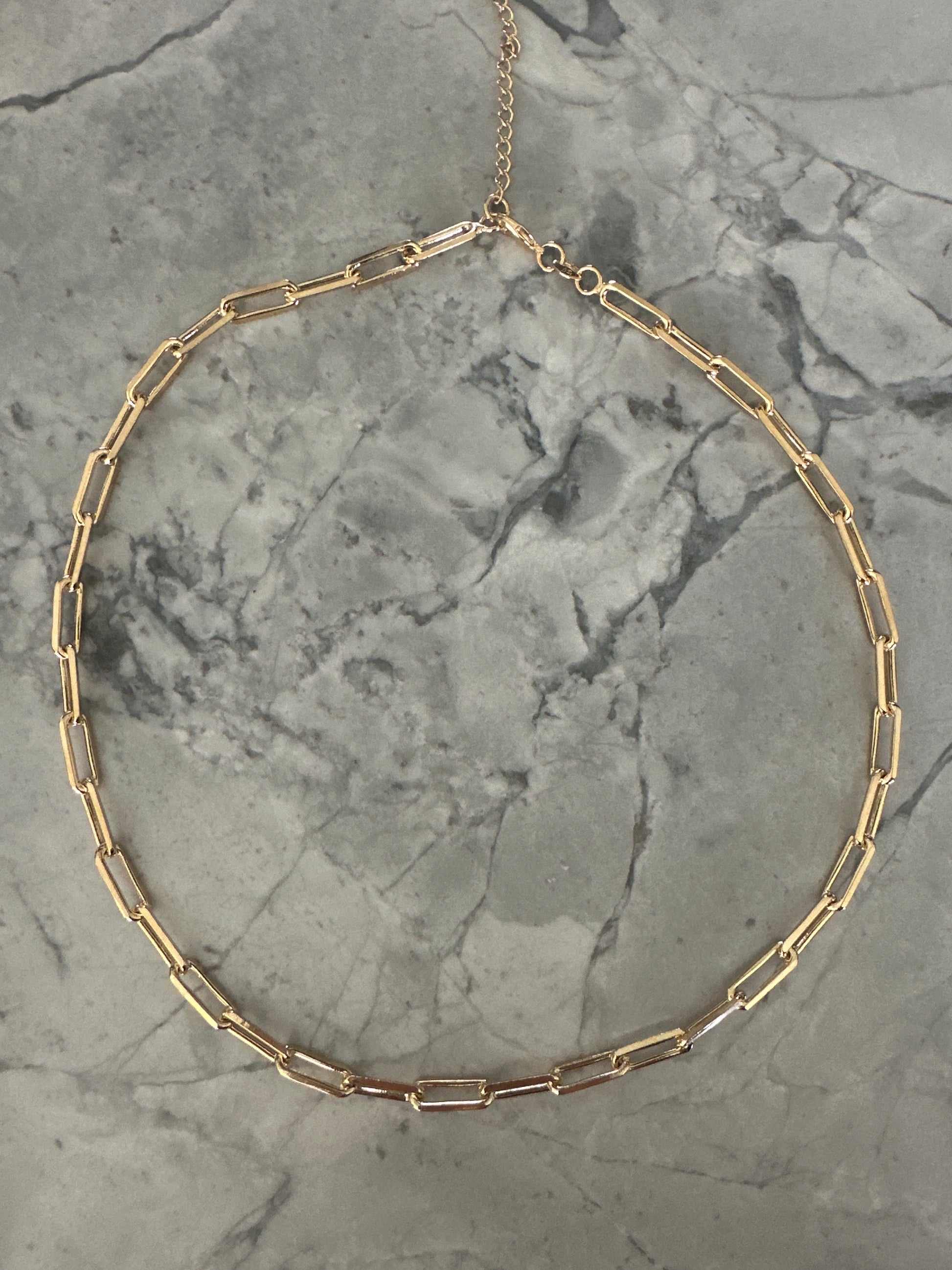 Bold yet minimal. This 18k gold-filled necklace features oversized paperclip links for a chic statement look. Lightweight and versatile, it’s perfect for elevating everyday outfits or layering with delicate chains.