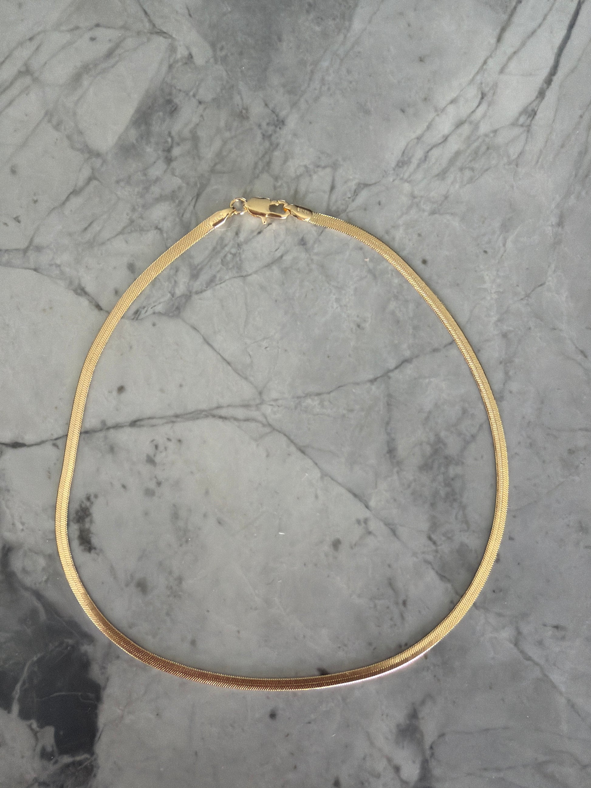 Sleek, fluid, and endlessly stackable. This 3mm herringbone gold chain necklace in 18k gold-filled offers a smooth, reflective finish that lies flat against the skin for a bold yet elegant look. Available in three essential lengths to suit your layering style.