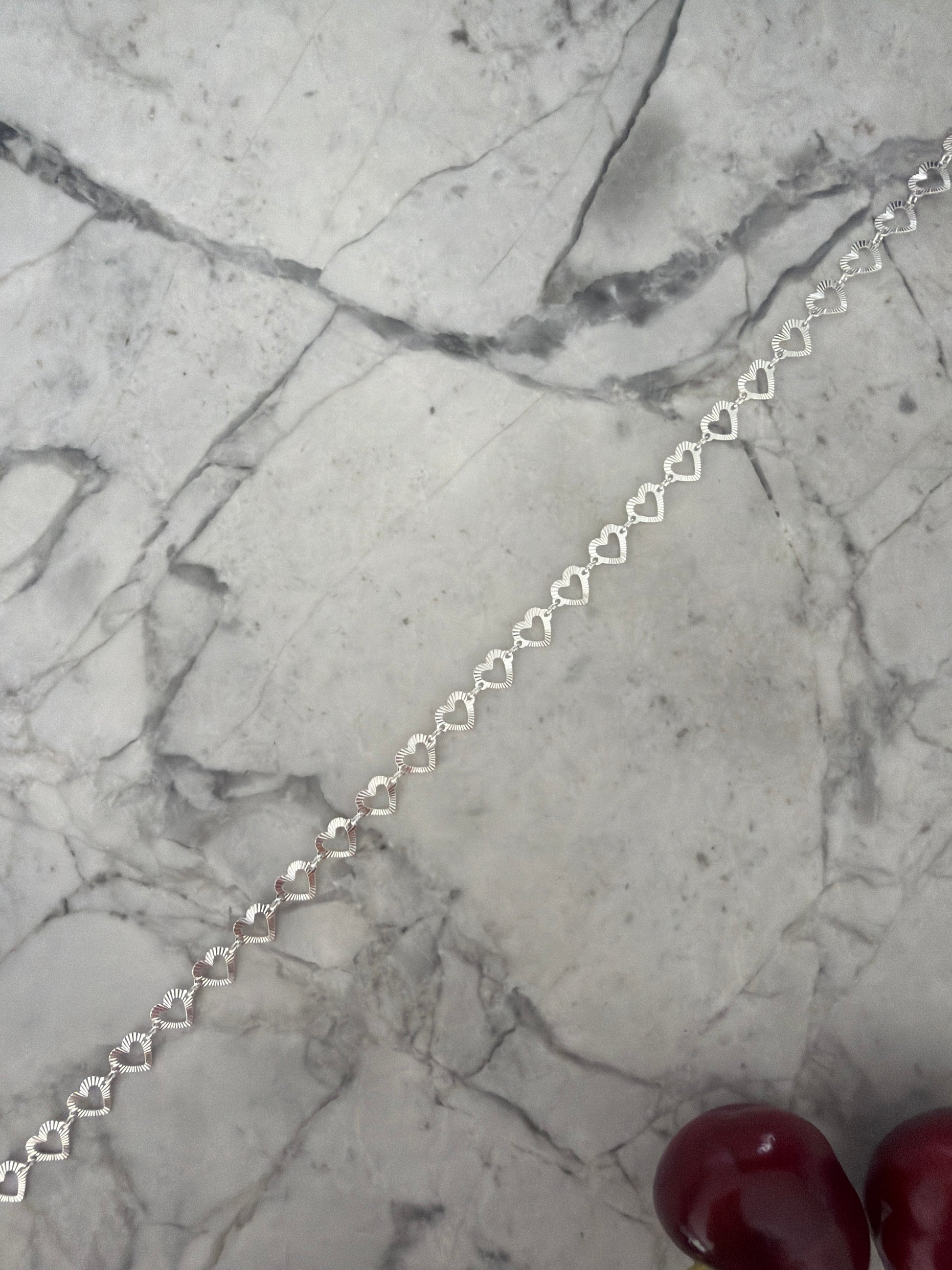 Heart Links Silver Anklet – Sterling Silver 925, 25.4cm