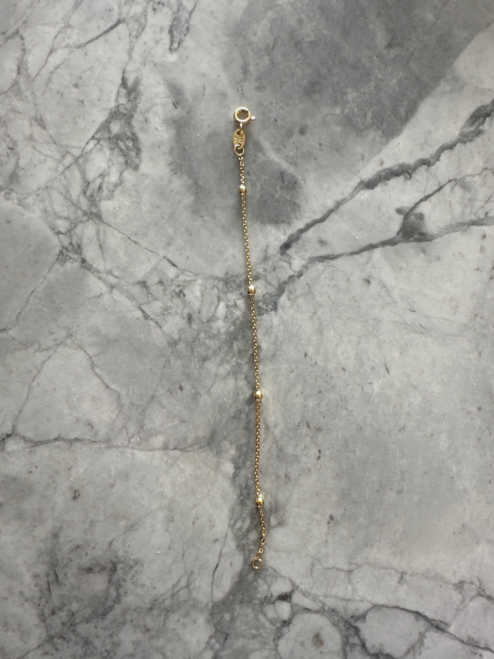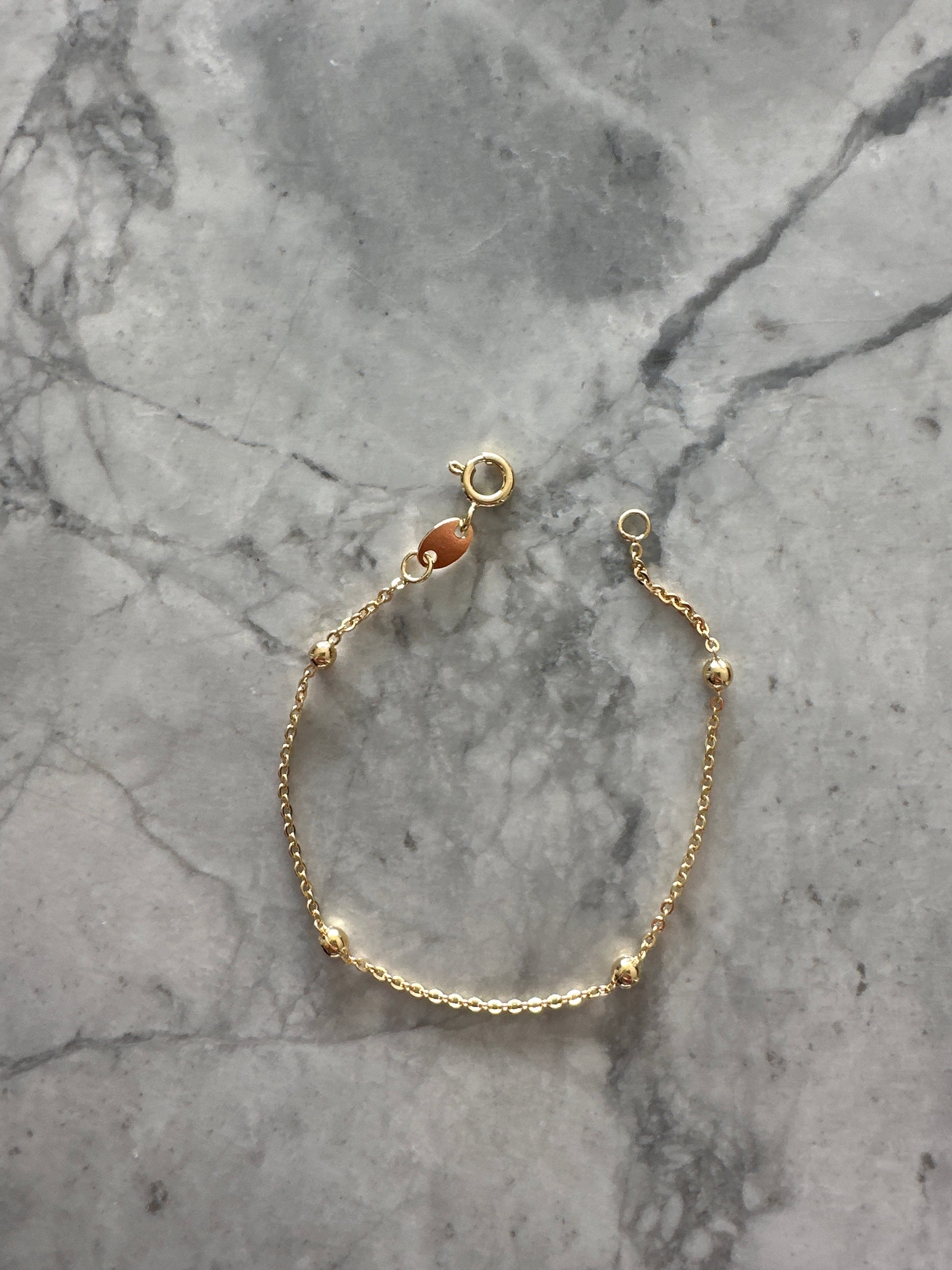 Delicate and understated. This 18k gold-filled bracelet features a fine chain accented with subtle beads, designed for smaller wrists. A timeless piece you’ll reach for every day.