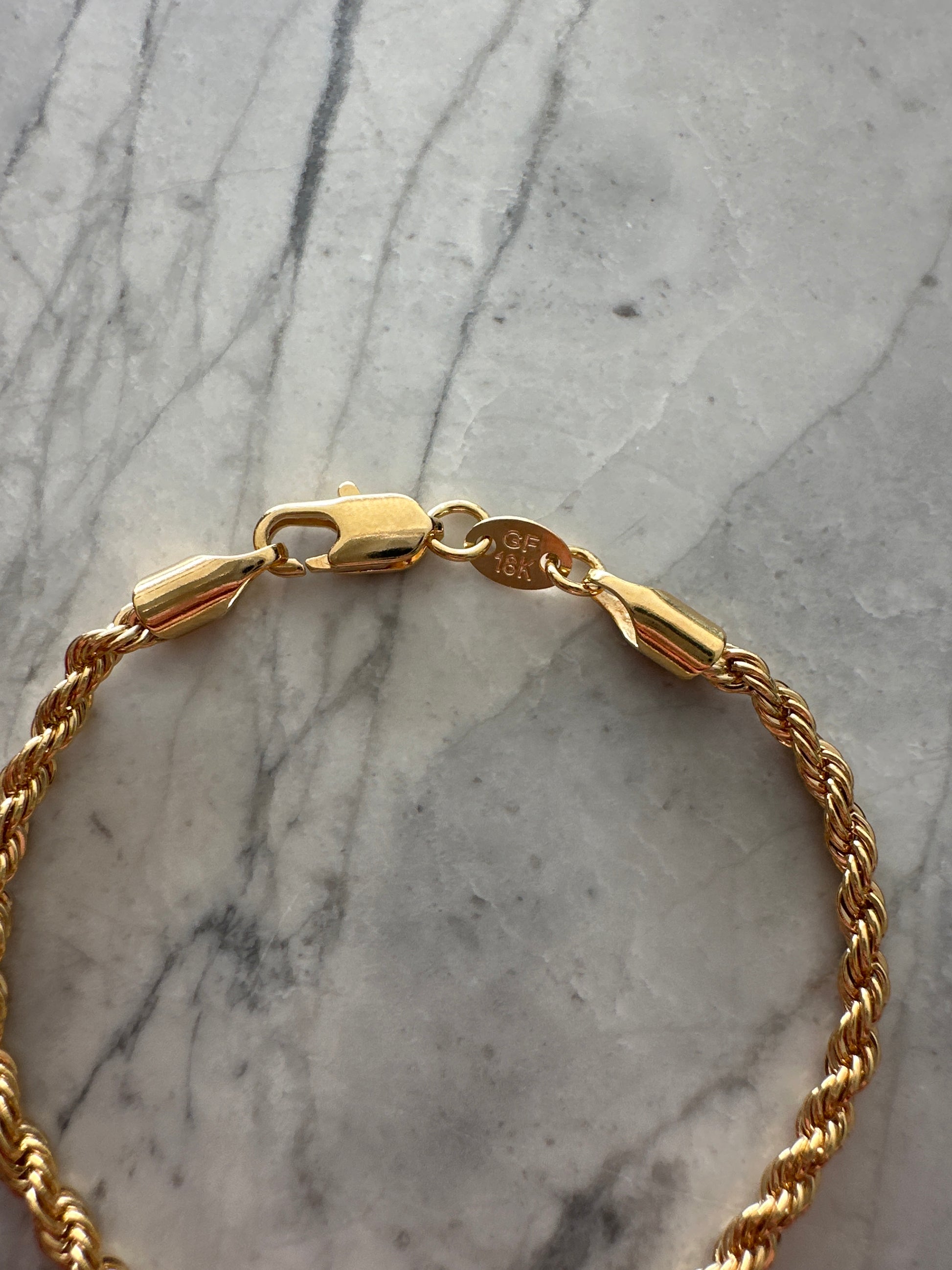 Delicate and refined. This 18k gold-filled bracelet features a fine rope twist design, tailored for smaller wrists. Effortless on its own or stacked for a layered, textural look.