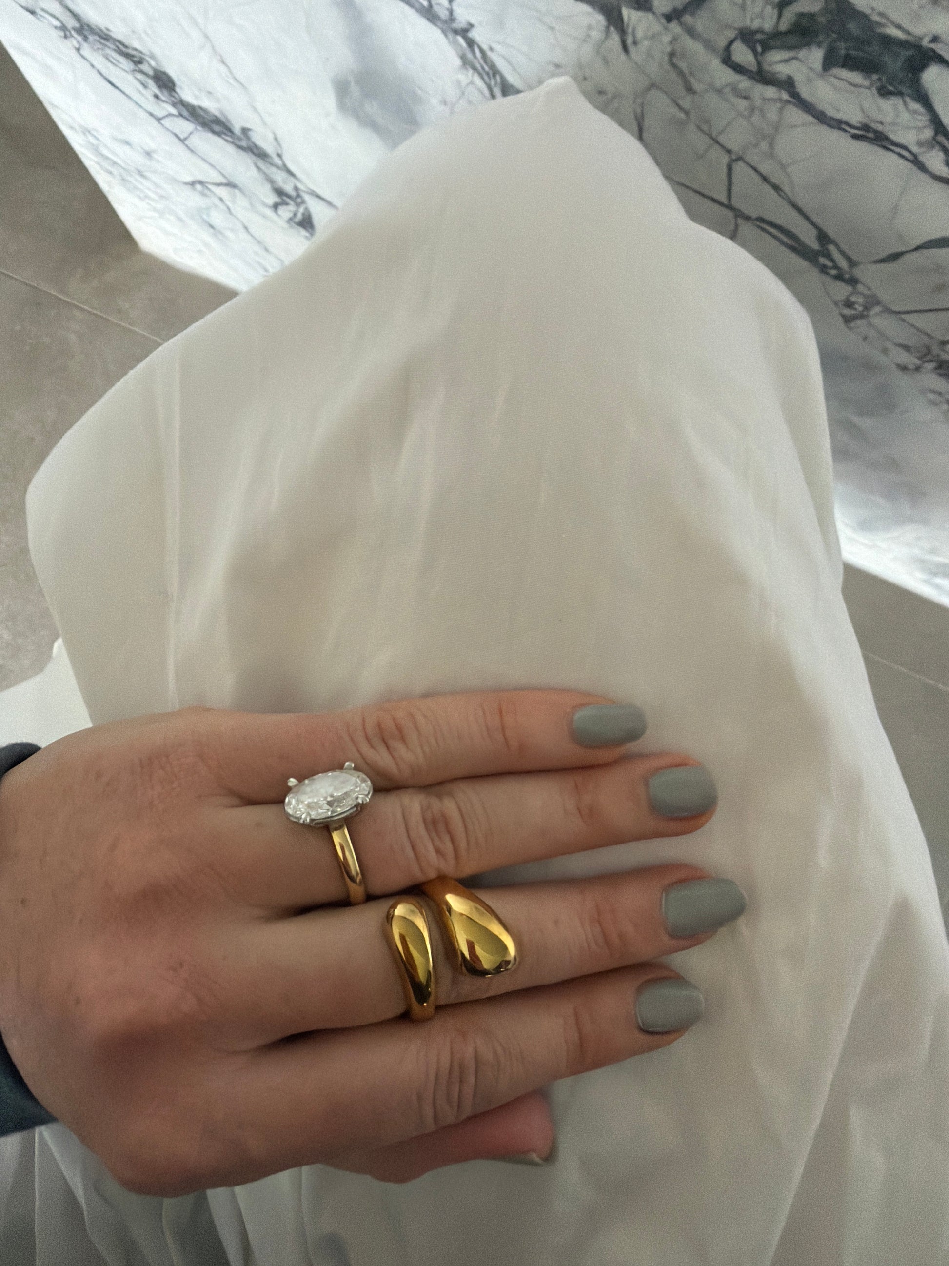 Styling tip: Let it stand alone as your hero piece, or stack it with slim bands for a striking contrast in shape and texture.